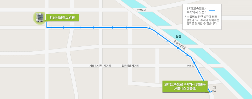 병원 출발 | SRT 고속철도 수서역사 출발 (SRT 3번출구) |