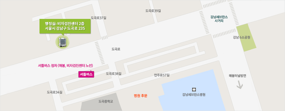 주소 : 서울시 강남구 도곡로 235 강남세브란스병원 비자검진센터 확인