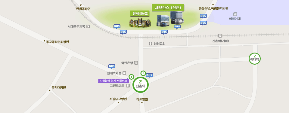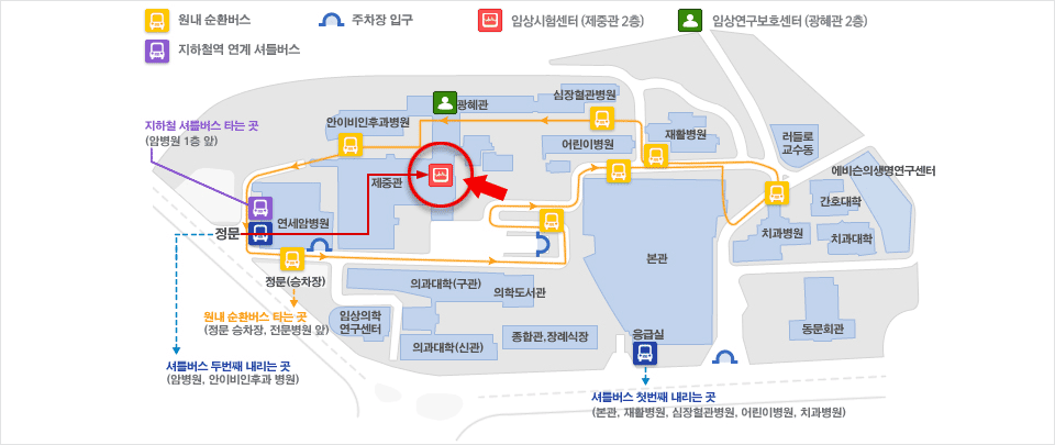 2호선 지하철역 연계 셔틀버스 (2호선 신촌역 ↔ 암병원 1층) |
