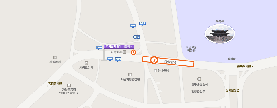 3호선 지하철역 연계 셔틀버스 ( 3호선 경복궁역 ↔ 암병원 1층 ) |